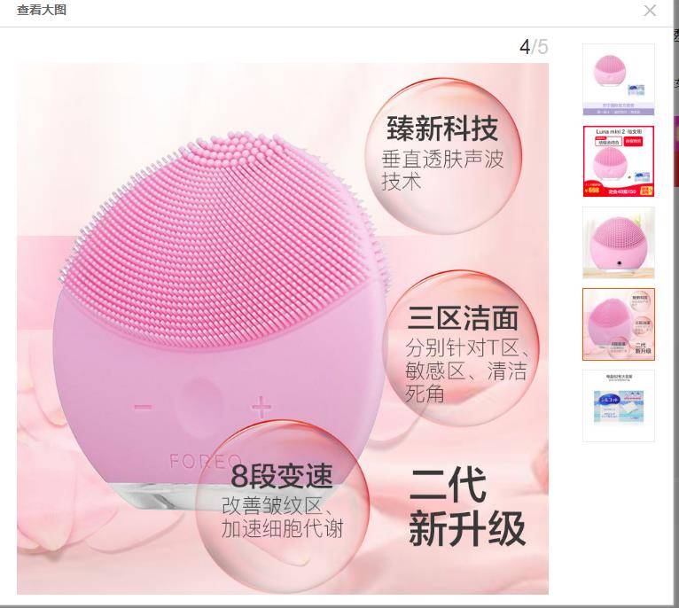 FOREO斐珞尔第二代露娜迷你硅胶电动音速净透毛孔洁面仪 花