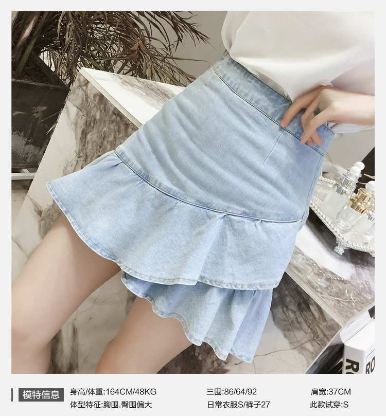2018夏装新款韩范高腰荷叶边不规则包臀短裙女chic牛仔A字半身裙