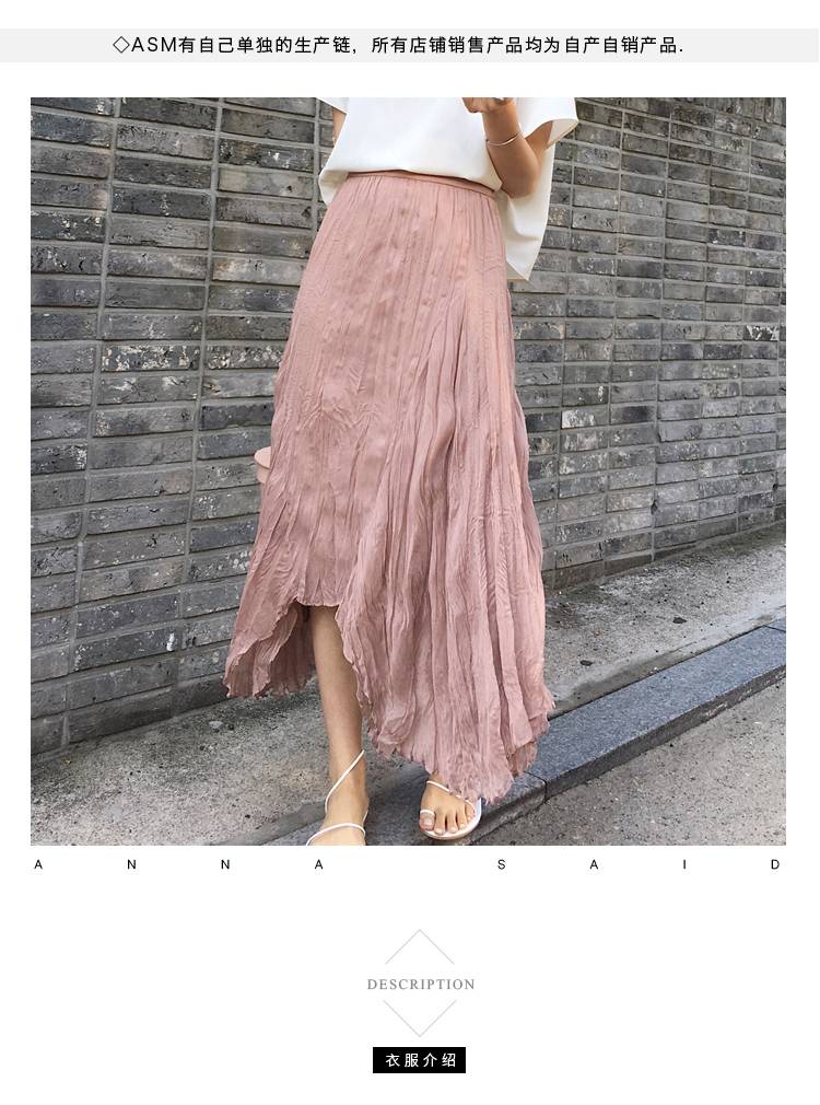 百洛安不规则半身裙女2018夏季新品韩版纯色高腰中裙子气质A字裙