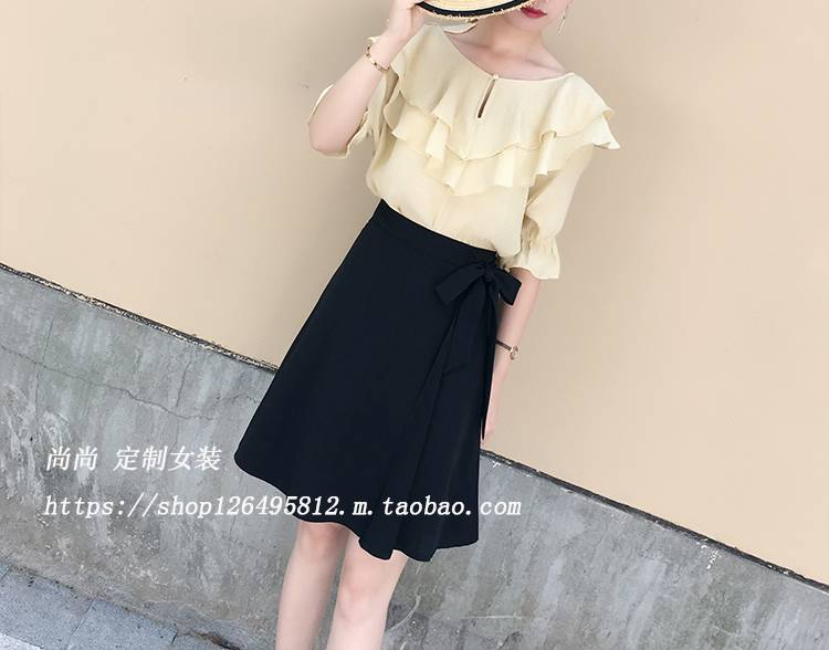 雪纺半身裙夏女a字裙2018新款高腰短裙中长款显瘦中裙子a型黑色裙