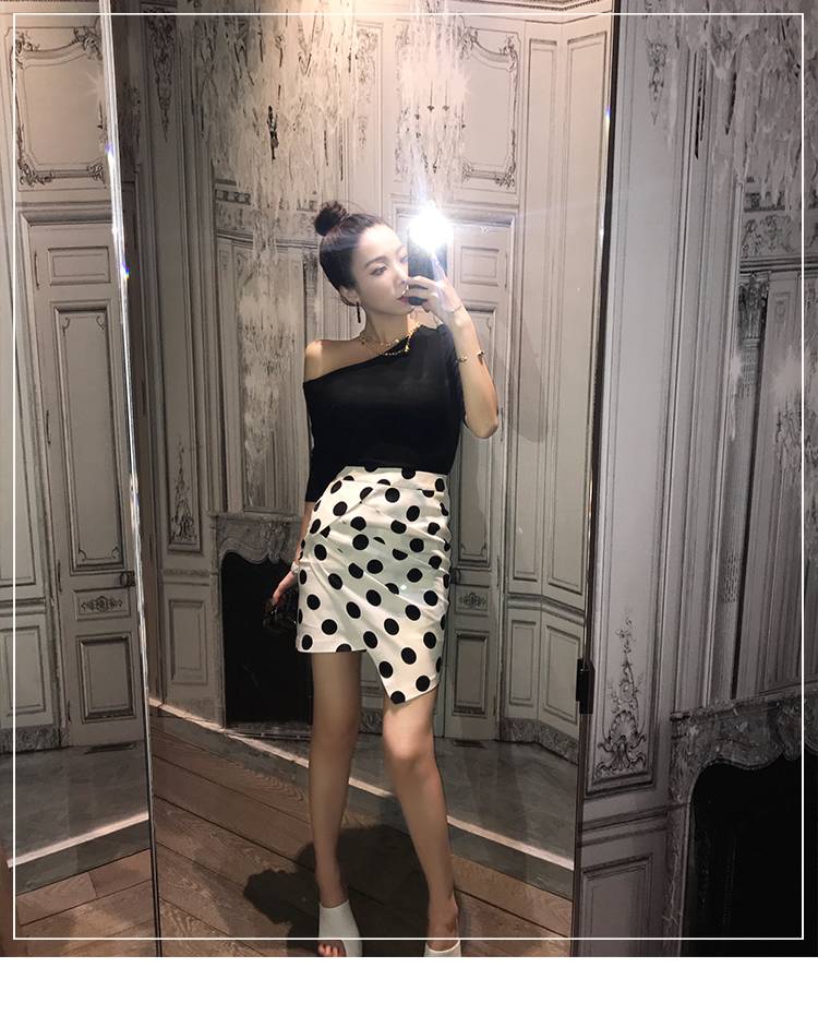 Alice W花花家黑色波点半身裙夏女2018新款短裙不规则百搭包臀裙