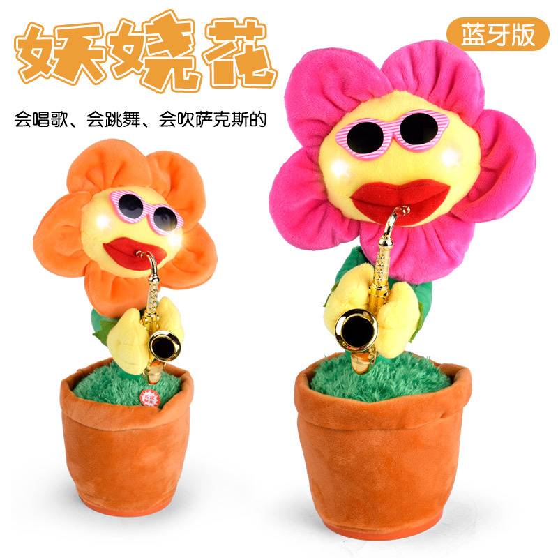 抖音同款电动太阳妖娆花 唱歌跳舞萨克斯仿真向日葵毛绒玩具