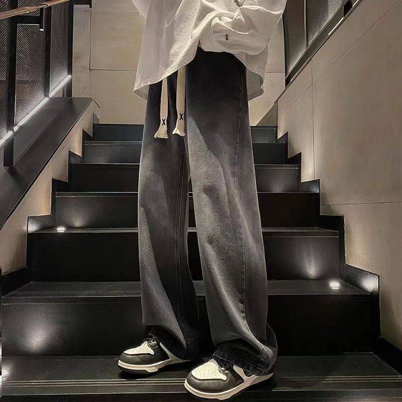 美式高街渐变水洗做旧牛仔裤