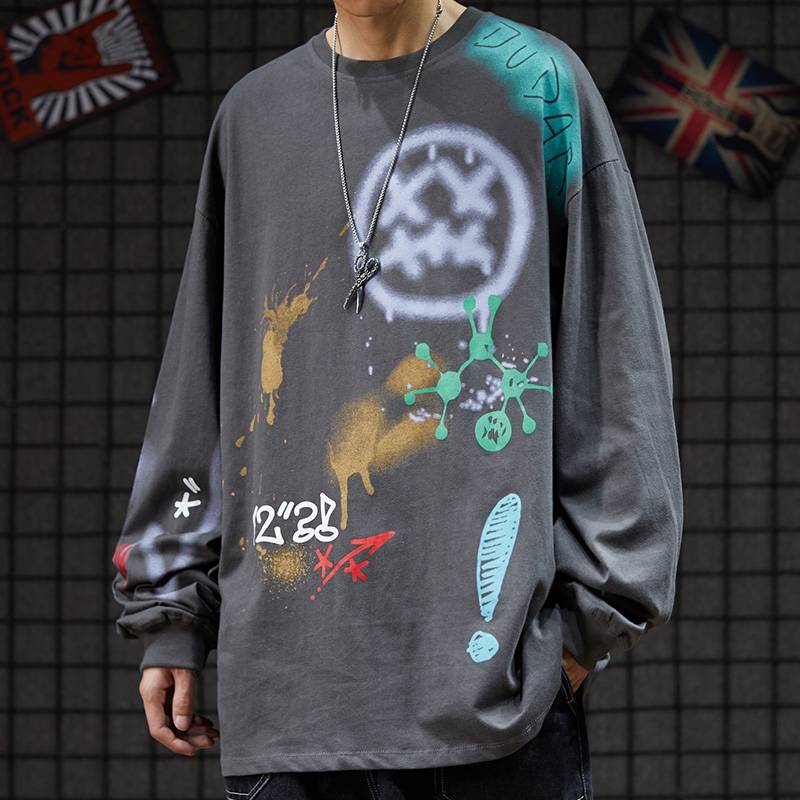 潮牌嘻哈舞涂鸦手绘个性圆领
