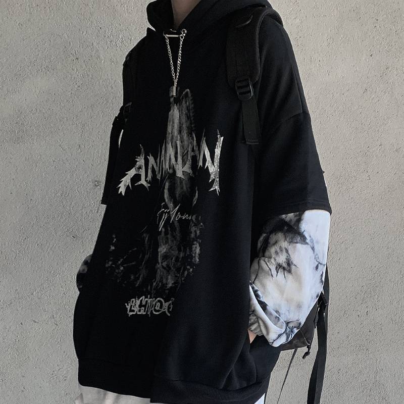 暗黑亚逼风扎染恶灵印连帽卫衣