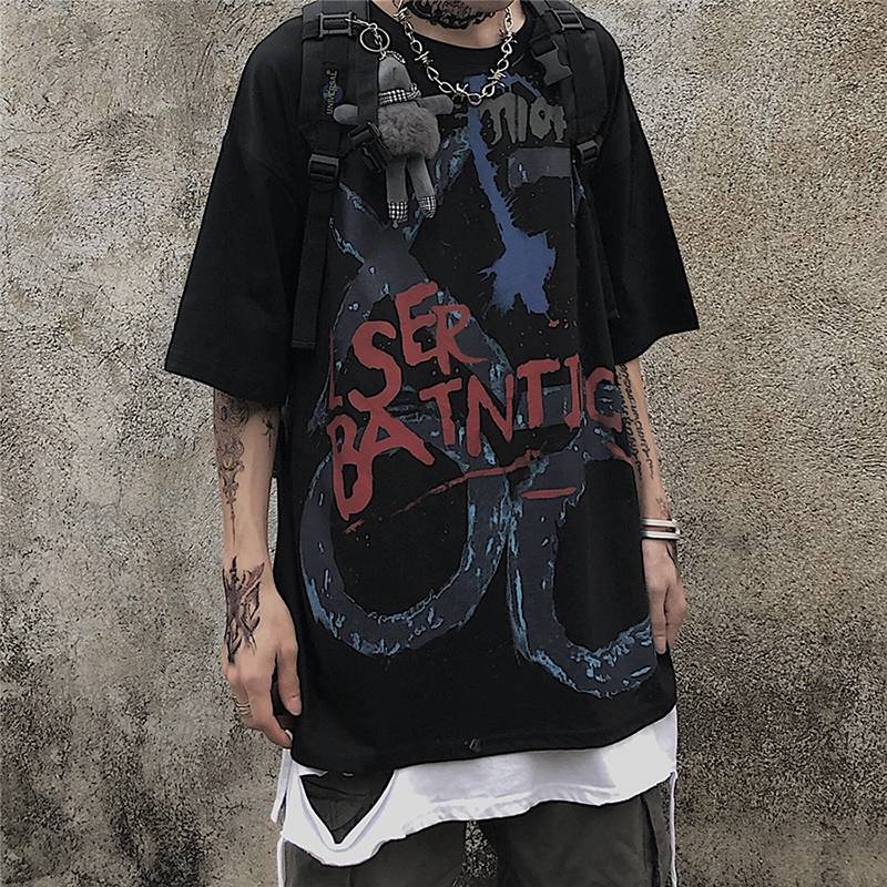暗黑ins潮牌颓废感嘻哈原创涂鸦短袖