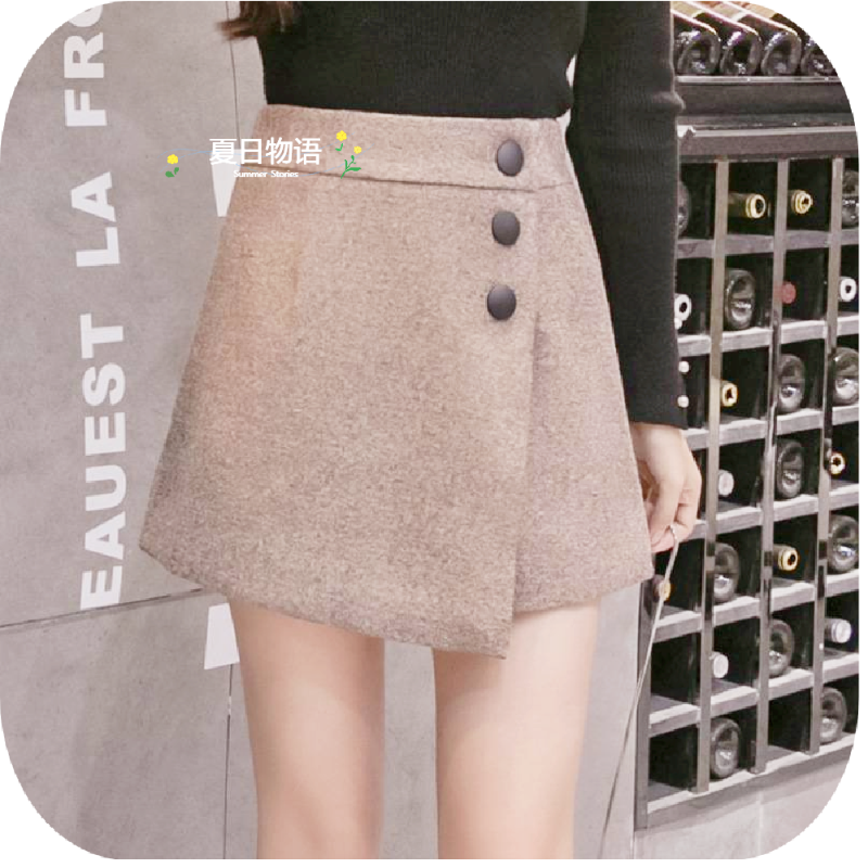 a字裤瘦腰裙2019秋冬新款呢子阔腿靴短裤女不规则高腰短裙裤毛呢裤