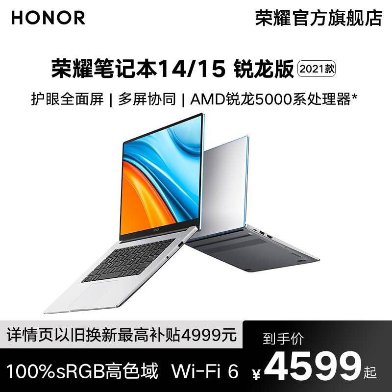 【新品首发】荣耀Magicbook14/15英寸 2021新款锐龙版R5/R7 游戏笔记本电脑手提学生学习考研办公用商务轻薄
