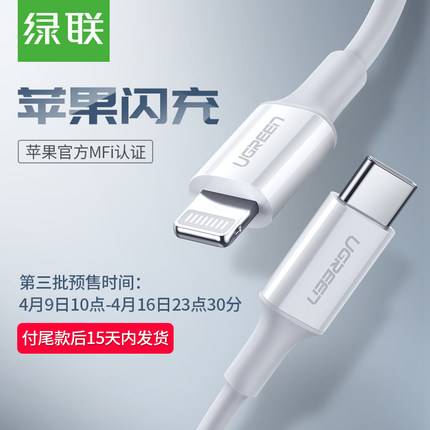 绿联苹果PD快充线typec转lightning数据线iPad mfi认证8P
