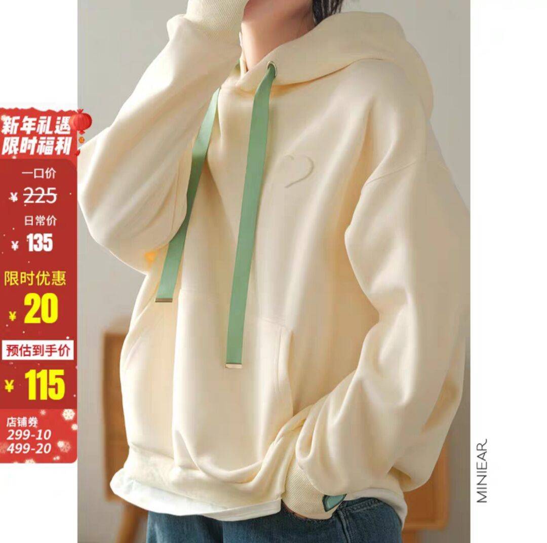 早春新款假两件爱心连帽卫衣宽松上衣