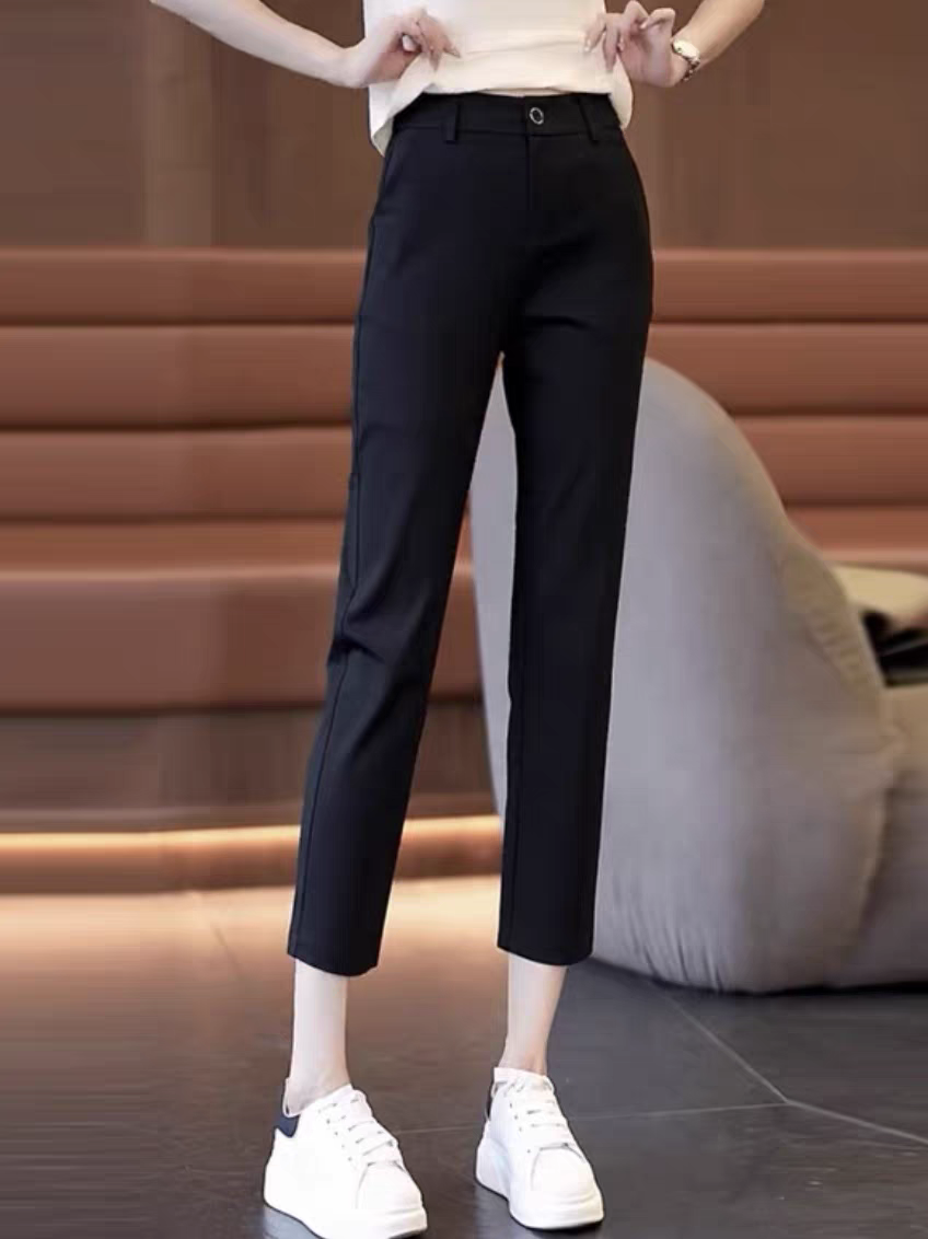2025新款女士裤子春夏薄款休闲裤八分九分裤冰丝速干烟管西装直筒