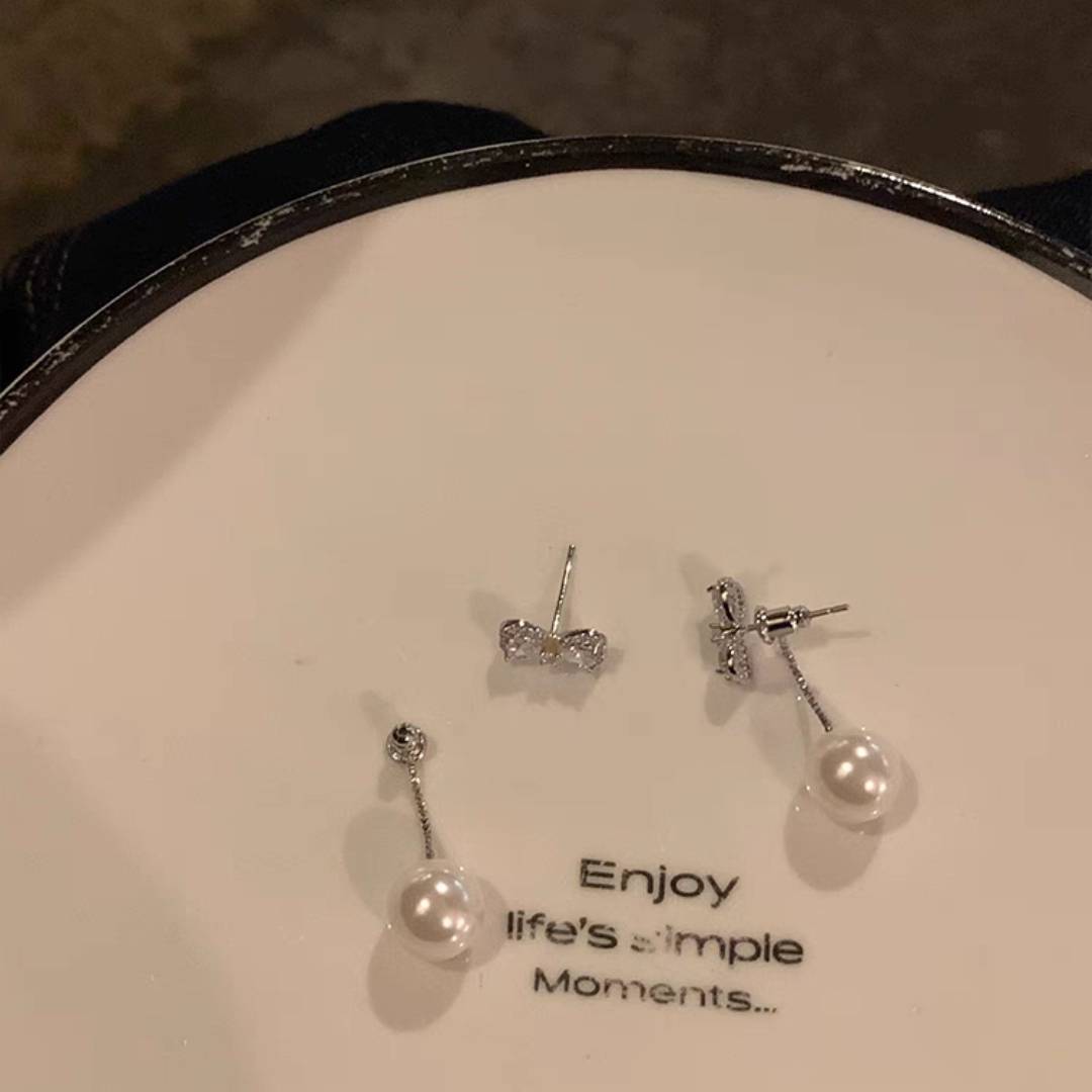 氛围美神~闪锆蝴蝶结长款珍珠流苏后挂式可拆卸耳钉