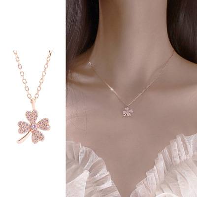 925纯银幸运四叶草项链女锁骨链ins冷淡风纯银潮气质韩版简约颈链