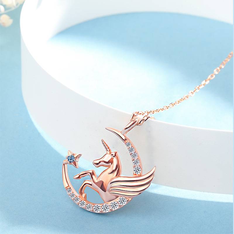新款梦幻独角兽项链女创意卡通小众设计感锁骨链网红ins吊坠纯银