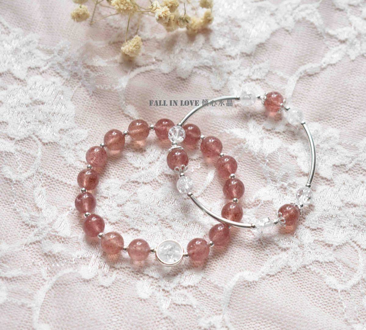 天然草莓晶手链女转运招桃花粉晶手串ins小众设计闺蜜款礼物