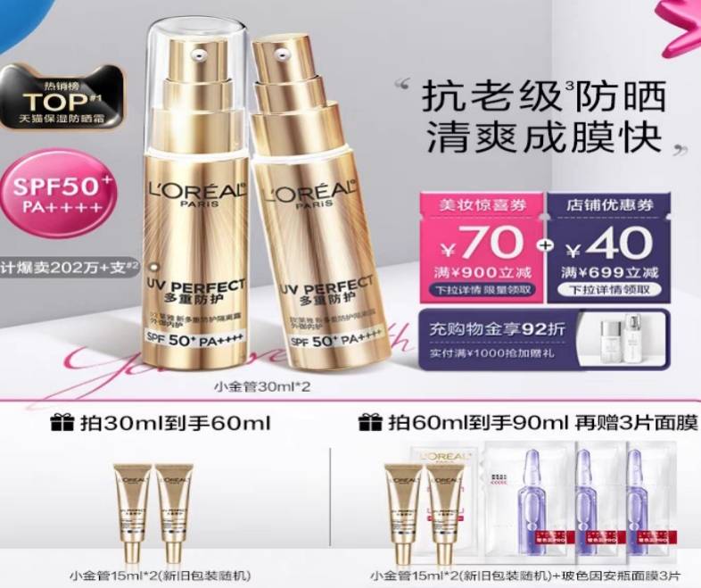 欧莱雅防晒小金管 180.00 已售:0件