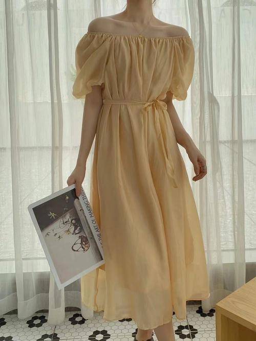 韩系简约森系一字领连衣裙