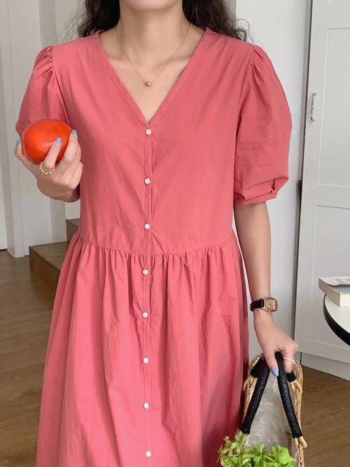 枚红色显白显瘦韩系连衣裙