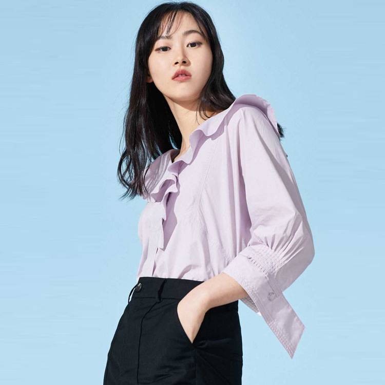 2020夏装新款港味印花西装领衬衫女七分袖上衣宽松显瘦韩范