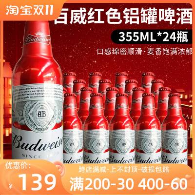 Budweiser/百威啤酒小瓶铝罐355ml*24瓶整箱国产红瓶装啤酒铝瓶