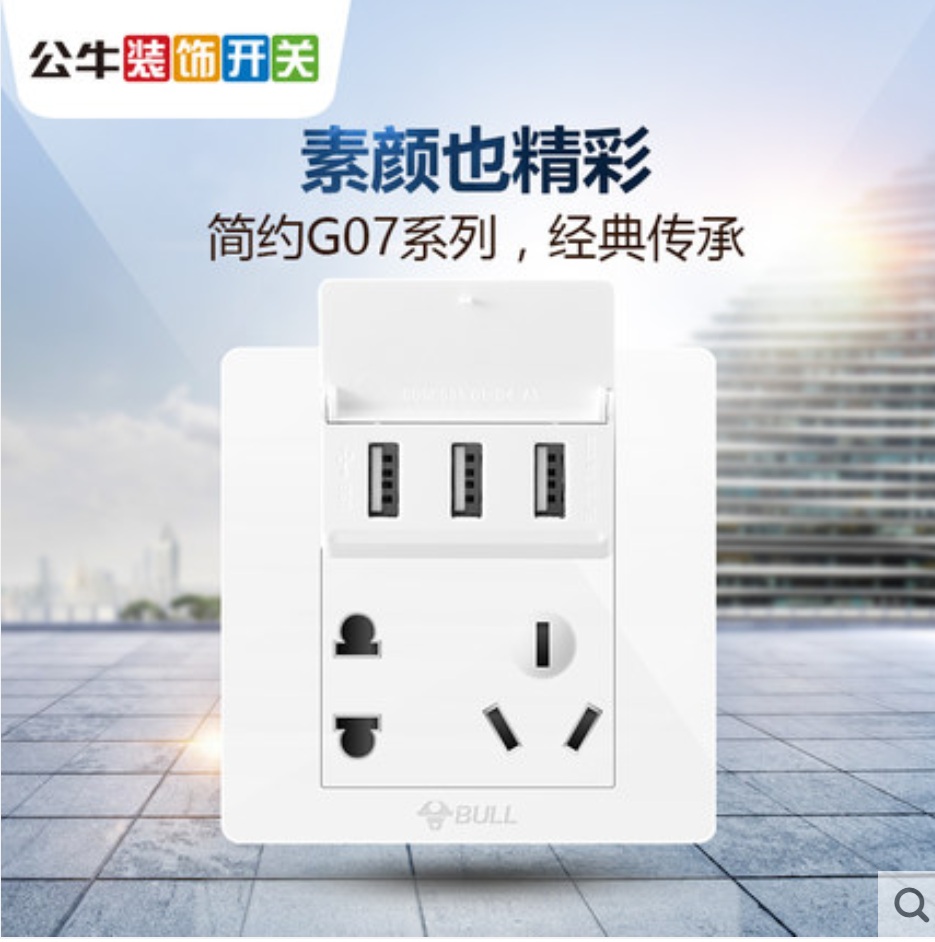 公牛86型墙壁开关插座3.1A三USB插座五孔包邮带USB电源5孔插座面板
