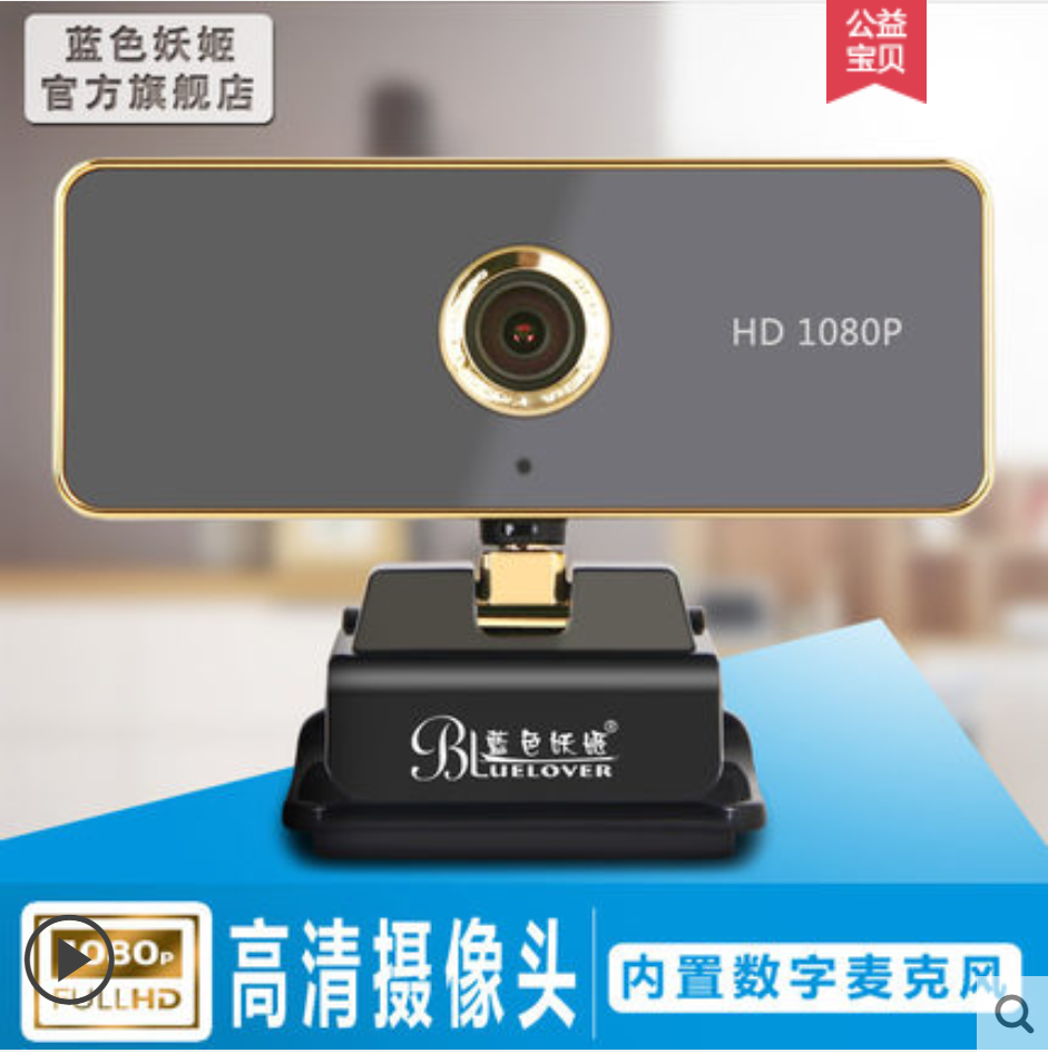 蓝色妖姬1080P台式电脑摄像头带麦克风高清YY直播主播usb免驱720p