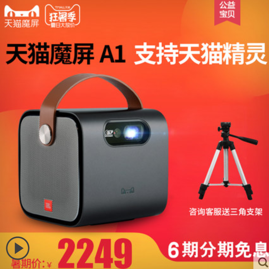 天猫魔屏A1 投影仪家用办公便携式智能家庭影院高清包邮送幕布送支架