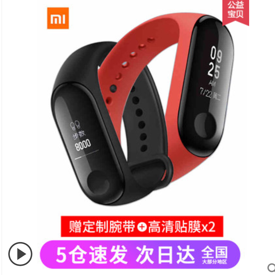 小米手环3代防水智能运动蓝牙手表男女通话提醒跑步计步包邮买一送一