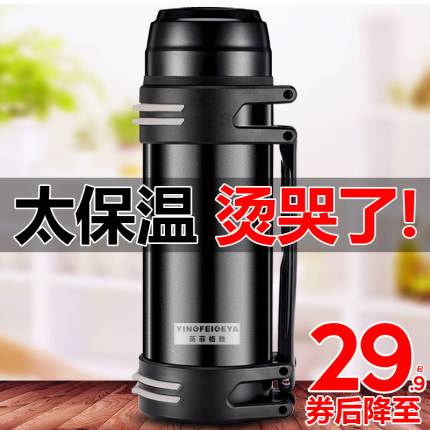 保温杯男大容量保温壶暖水瓶户外便携车载旅行水杯水壶2L
