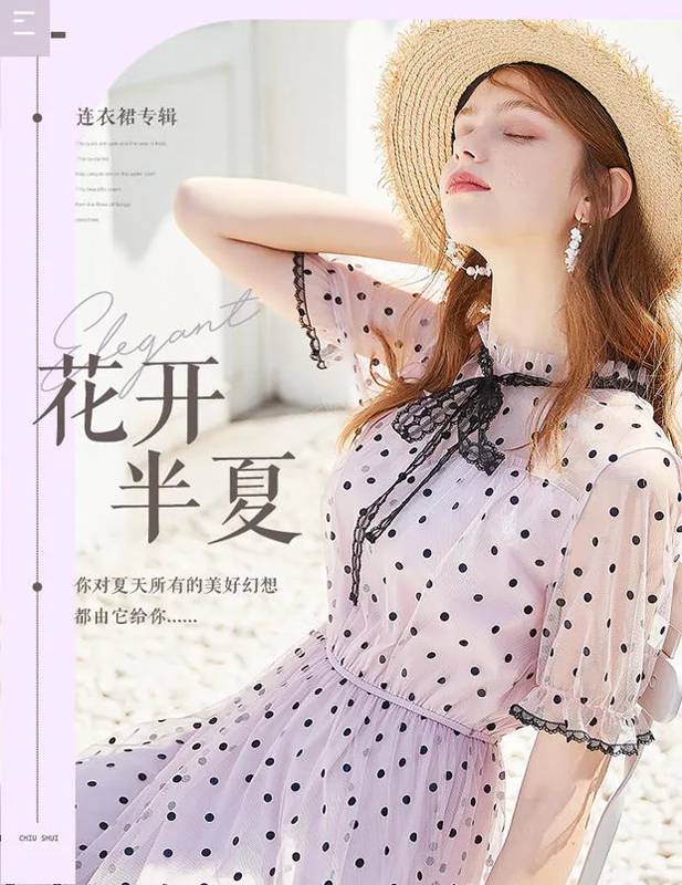 法国小众桔梗裙子女2020夏装新款气质V领单排扣雪纺短袖连衣裙女