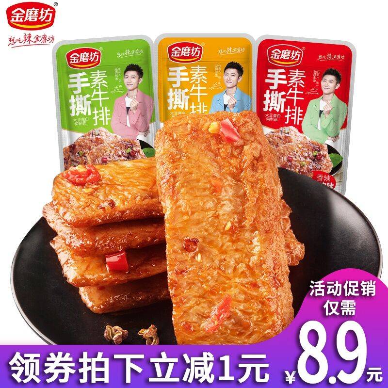 金磨坊手撕素牛排50包素牛肉素肉卷豆干辣条整箱零食小吃休闲食品
