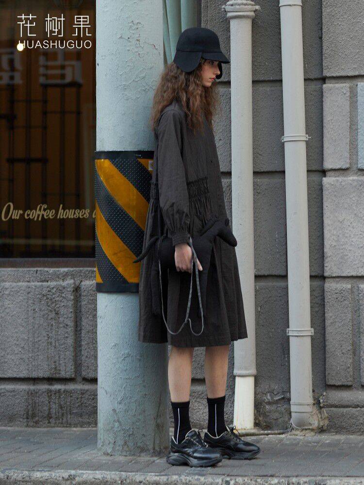 乐町气质法式衬衫连衣裙春装2021女装白色翻领气质甜美连衣裙子