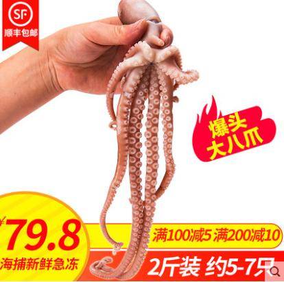 八爪鱼鲜活海鲜大爆头 青岛长腿小章鱼冷冻水产2斤超大网红八抓鱼