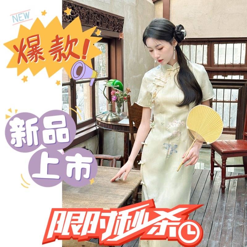 新中式旗袍绿色小清新改良少女年轻款日常复古中国风素雅2024春夏