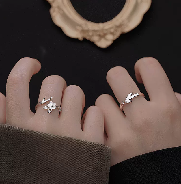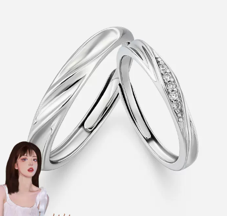 青梅竹马情侣对戒纯银一对小众设计女时尚个性冷淡风戒指男可调节