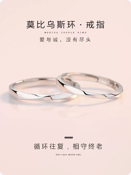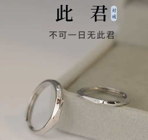 《此君》戒指情侣款对戒纯银一对原创小众设计可调节礼物定制刻字