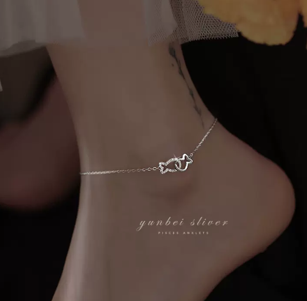 S925纯银亲吻鱼脚链女2021新款潮森系高级感银饰精致ins网红配饰
