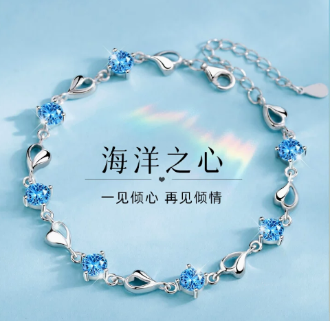 银情侣蓝水晶手链女生2022年新款女纯银闺蜜手饰生日礼物送女朋友