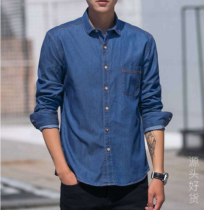 男装秋上新2018全棉日系牛仔男士衬衫纯棉修身休闲衬衫男新款 限时特价