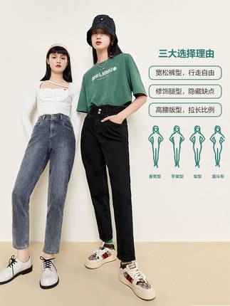 黑色直筒牛仔裤女2021年新款春秋季高腰宽松显瘦小个子九分烟管裤