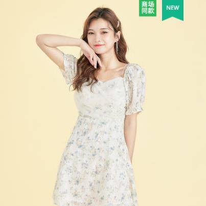 连衣裙2021夏季新款法式仙女网纱抹胸显瘦小个子碎花裙