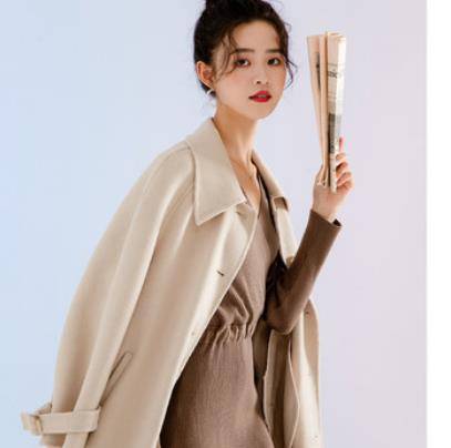 拉夏贝尔反季双面呢羊毛呢外套女2021年新款早秋装中长款呢子大衣