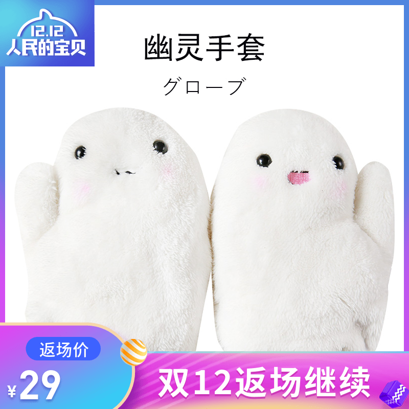 圣诞幽灵手套ins少女心软妹女冬学生可爱保暖带绳挂脖毛茸茸卡通