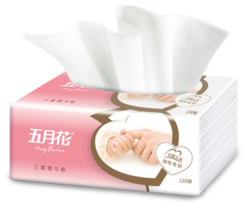 五月花妇婴系列抽纸130抽6包装3提面巾纸家庭装婴儿可用纸巾