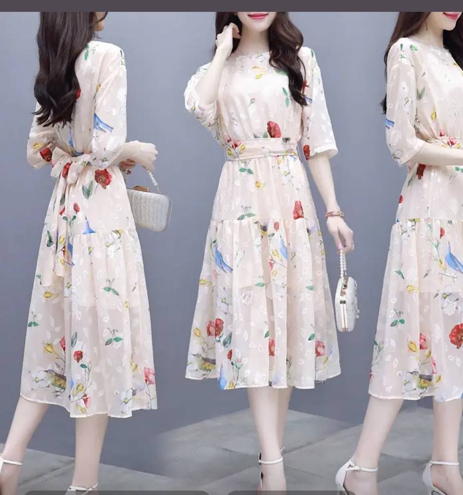 乐町气质复古连衣裙2021新款春女装奶油蜜桃蝴蝶结连衣裙