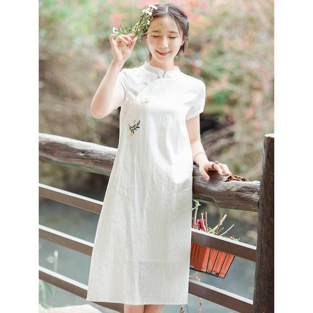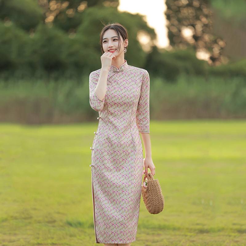 旗袍改良版2023春季新款少女年轻款复古中国风中长款旗袍连衣裙