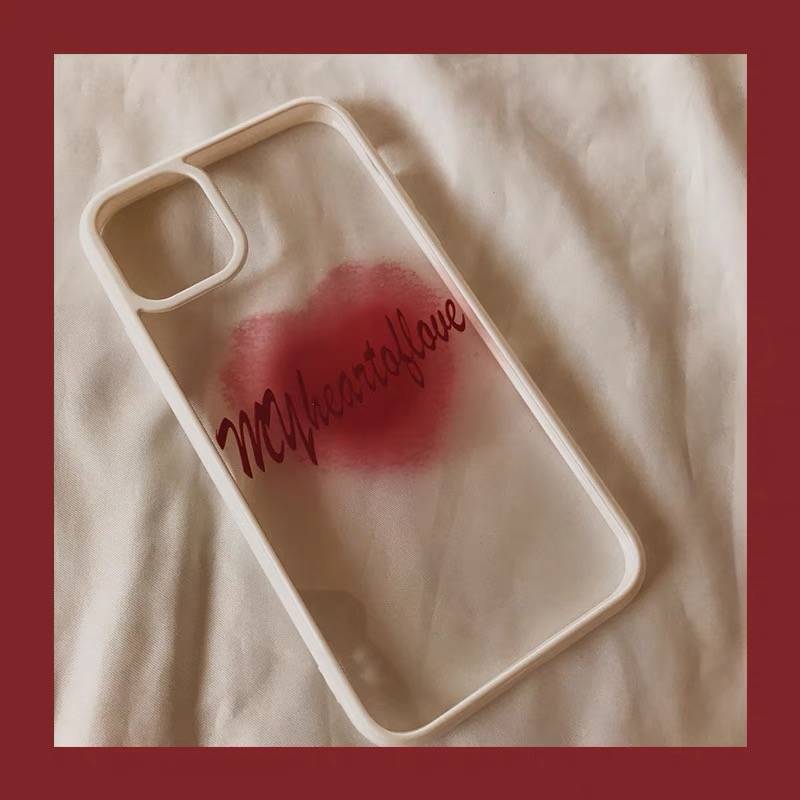 ins白边透明蓝色爱心手机壳