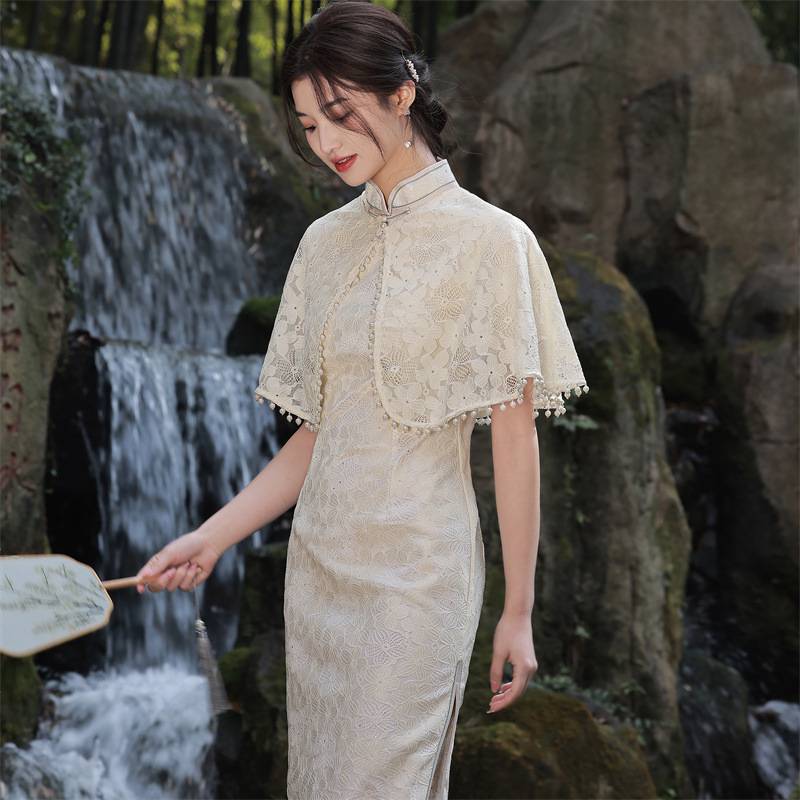 2023春夏款斗篷披肩旗袍年轻款少女气质复古民国风改良旗袍连衣裙