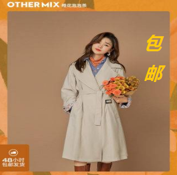 MELLIIY 2021年春装新款复古卡其色宽松格纹拼接风衣外套女中长款