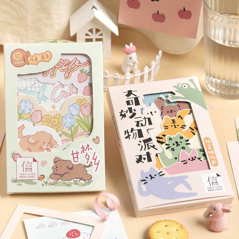 盒装明信片学生礼物水彩手绘甘梦乡记录幸福文艺奇妙动物派对清新